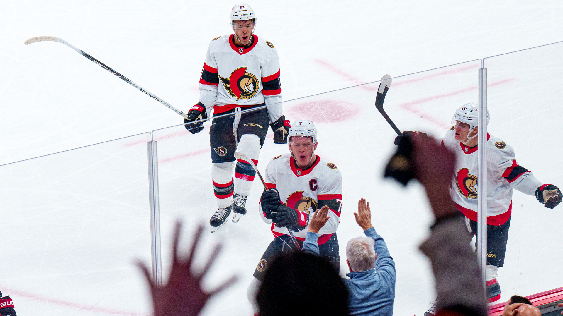 Матч, прошедший в Оттаве, завершился со счётом 7:4 в пользу хозяев (по периодам: 1:2, 3:1, 3:1). Дубль у победителей на счету Дрейка Батерсона (7-я и 54-я минуты). Также шайбы забросили Уоррен Фогель (24-я минута), Фабиан Зеттерлунд (34), Тайлер Клевен (35), Дилан Козенс (55) и Брэди Ткачук (58). У "Шаркс" отличились Марио Ферраро (5), Тайлер Тоффоли (15), Коллин Граф (31) и Майкл Миса (44).